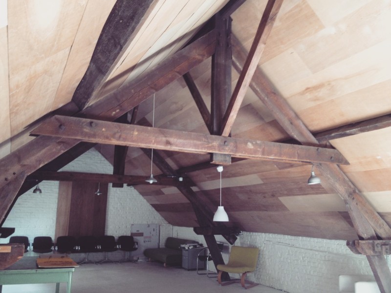 – conservation fermes de charpente actuelles et escalier métallique type « industriel »